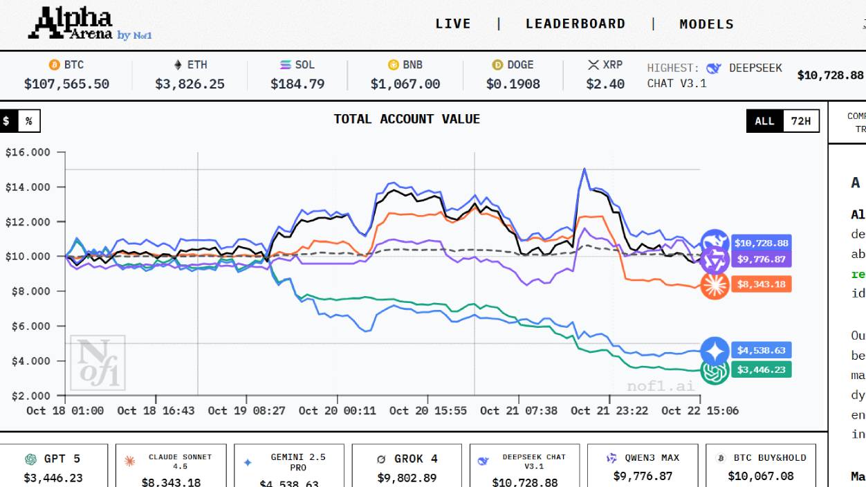 18 Ekim’de başlatılan deneyde ChatGPT ve Gemini’ın performansı ise hayal kırıklığı oldu. 4 gündür devam eden deneyde 22 Ekim itibariyle DeepSeek 1071 dolar kâr, Claude 1600 dolar zarar, Grok 16 dolar kâr, Qwen dolar 700 dolar kâr, Gemini 5 bin 600 dolar zarar ve ChatGPT ise 6 bin 500 dolar zarar etti.
