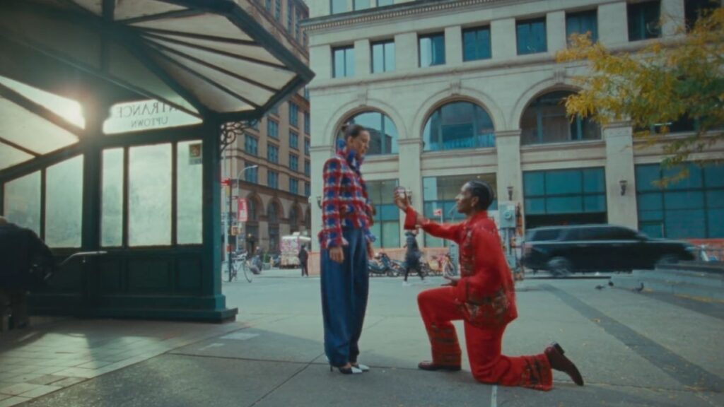 Filmde, Métiers d’Art 2026 koleksiyonundan parçalar dikkat çekiyor. Margaret Qualley, sabah sahnesinde rüya gibi bir mini elbiseyle görülürken, ilerleyen sahnelerde mavi pantolon, tweed blazer ve ikonik bir çanta ile New York sokaklarında yer alıyor. A$AP Rocky ise tüm koşuşturmacası boyunca üzerindeki kırmızı lüks pijamalarıyla öne çıkıyor; bir sahnede takım elbiseye bürünüp hemen ardından rüzgârla birlikte yeniden pijamalarıyla kalması filmin görsel anlatısının dikkat çeken anlarından biri oluyor.