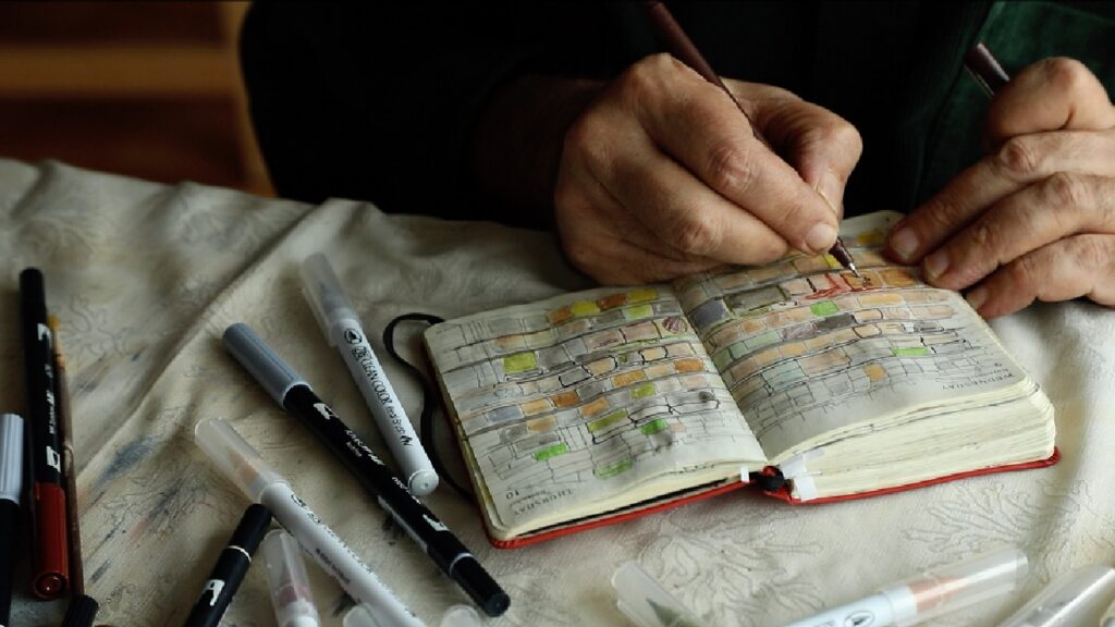 Kazma’nın çalışmalarında el, düşüncenin bir uzantısı değil, neredeyse kendisi olarak konumlanıyor. Japonya’da geleneksel mürekkep üreten ustanın eliyle, Orhan Pamuk’un arşivindeki bir kâğıda not düşen el arasında görünmez bir bağ var: Aynı atadan gelir gibiler. İkisinde de bir tür sessizlik, sabır ve süreklilik hakim. Bu elin hafızası ise yalnızca zamana değil, coğrafyalara da direniyor. Ve bu direnç, sanatın birçok biçimini –fotoğrafı, resmi, zanaati– doğuruyor.