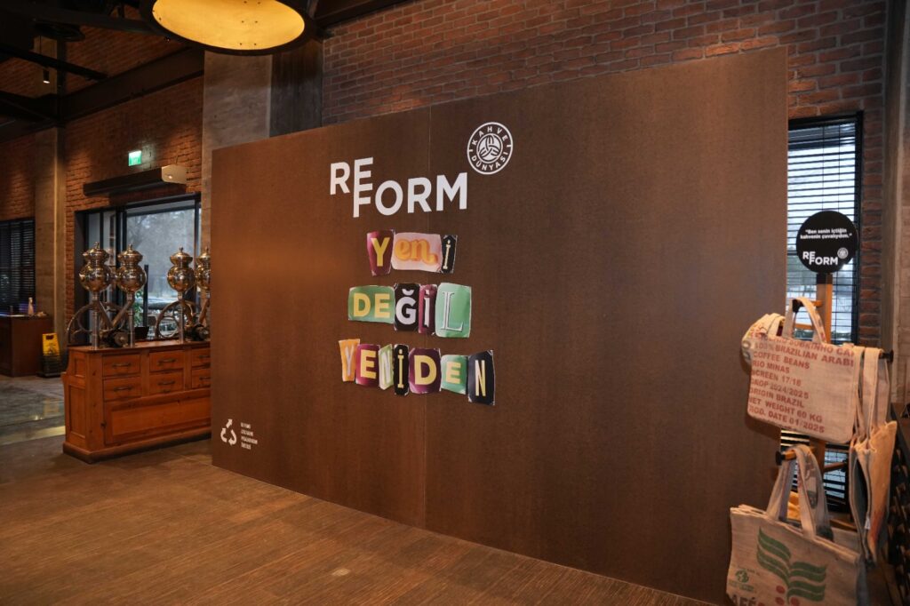 Kahve Dünyası’nın “Yeni değil yeniden” mottosuyla hayata geçirdiği Reform projesi ile kullanım ömrünü tamamlamış malzemeler, ileri dönüşüm (upcycling) prensibiyle yeniden tasarlanıyor. Bu proje ile Kahve Dünyası çevre bilinci yüksek, tasarıma ve hikâyeye değer veren tüketicilerle daha güçlü bir bağ kurmayı ve sürdürülebilir yaşam kültürünü gündelik hayatın doğal bir parçası haline getirmeyi amaçlıyor.