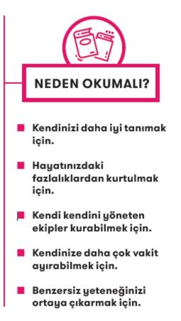 Kitap bu noktada okuyucuya sorular yöneltiyor: Vazgeçmeniz gereken müşteriler kim? Artık değer üretmeyen iş kalemleri neler? Zamanınızı tüketen alışkanlıklar hangileri?