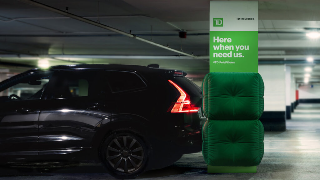 TD Insurance, Toronto’daki en karmaşık otoparkları veri toplayabilmek için inceledi. Bu veriler ışığında, çözüm olarak “Pole Pillows” (Direk Yastıkları) adı verilen yenilikçi bir ürünü yarattı: Beton direklerin çevresine sarılan yumuşak ve koruyucu yastıklar, park halindeyken dikkatsiz sürücülerin araçlarına zarar veren çentik, ezik gibi hasarları en aza indirgemeyi amaçlıyor.