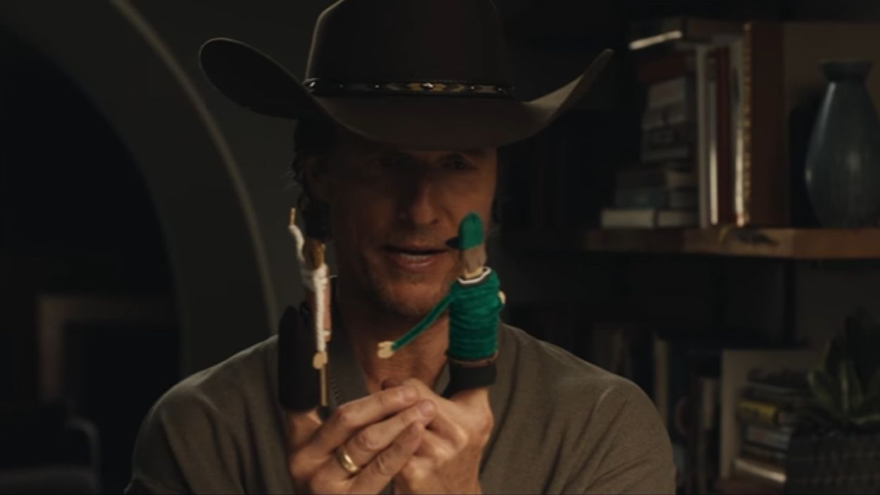 Uber Eats’in Super Bowl kampanyasında kendisinin “komplo teorilerine takıntılı” bir versiyonunu canlandıran McConaughey, bu kez Bradley Cooper’ı koşularında takip ediyor; Cooper’ın pes edişini parmak kuklalarıyla yeniden sahneliyor ve San Francisco 49ers’ın maskotu Sourdough Sam’i sorguya çekiyor.
