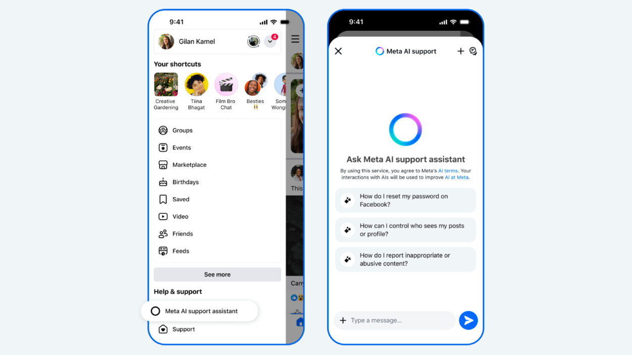 Meta, Facebook ve Instagram’da Meta AI destek asistanını dünya çapında kullanıma sunarak, şifre güncelleme ve profil ayarları gibi hesap sorunları konusunda 7/24 yardım sağlıyor.