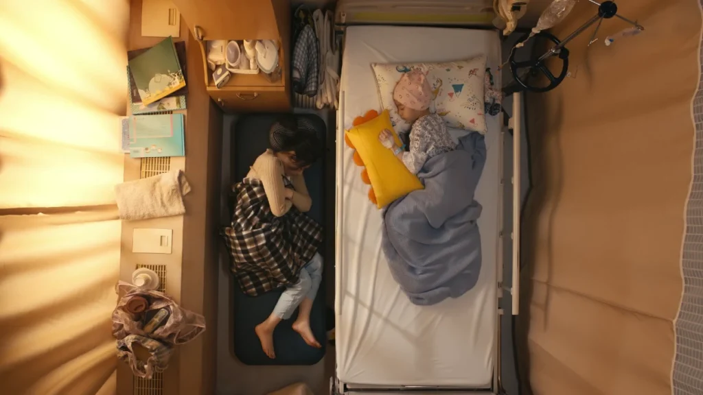 Güney Kore’de bir çocuk hastaneye yatırıldığında, taburcu olana kadar ebeveynin de çocukla birlikte hastanede yatması yasal bir zorunluluk. Ebeveynlerin bunu reddetmesi halinde çocuğun tedavisi yapılmıyor. Refakatçi anneler çocuklarının yanında ufacık yataklarda, rahatsız koşullarda yatmak zorunda kalıyor ve bu durum günlerce, aylarca hatta yıllarca devam ediyor. Toplumun bu refakat kültürünü kanıksaması, annelerin zor koşullarının göz ardı edilmesine neden oluyor.