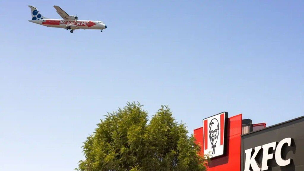 KFC İspanya, Kanarya Adaları’nda her yıl 4 milyon yolcu ağırlayan Tenerife Kuzey Havaalanı’na yakın mesafede açtığı yeni restoranının tanıtımını göklerde süzülen bir uçakla gerçekleştiriyor.